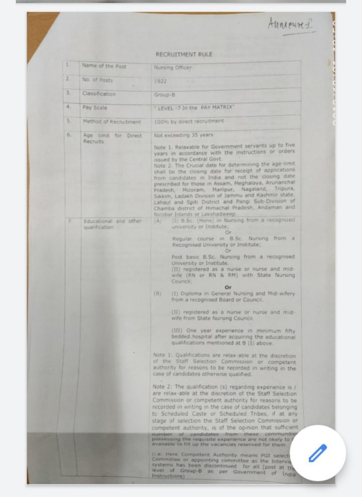 2. Qualification/ Experience for PGIMER Released Nursing Posts