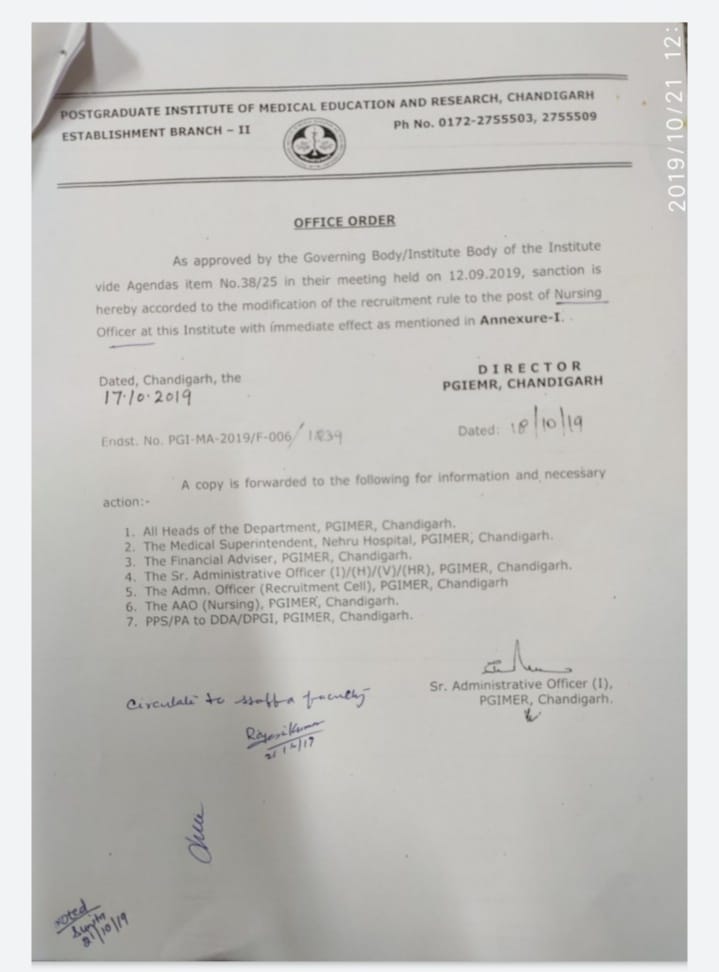 Selection to Nursing officer posts in PGIMER will be only on the merit obtained in the Written test followed by skill test if any required by the post.